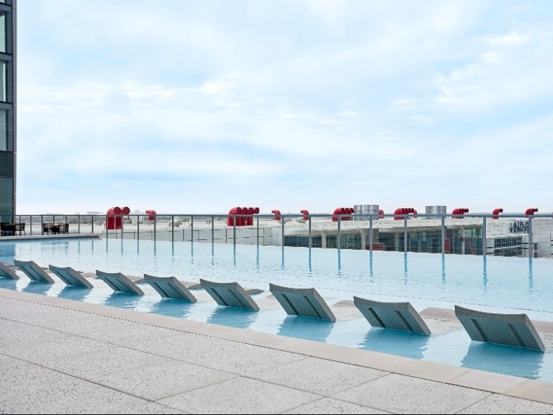 For those looking to soak up the sun, there are plenty of lounge chairs surrounding the lazy river terrace as well as poolside cabanas for those seeking some shade. If the lazy river doesn’t float your boat and you’d rather spend your time swimming, the hotel’s amenity deck also has an impressive infinity pool.